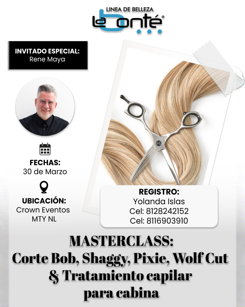 Este marzo, registrate a las proximas Masterclass exclusivas en Corte de Dama de la mano de nuestro invitado especial Rene Maya y nuestra sucursal oficial La Bonté Monterrey.