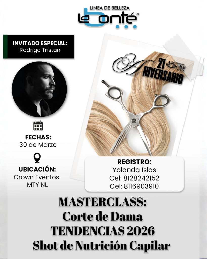 La Bonté Monterrey te invita a vivir una experiencia única con nuestra Masterclass: Corte de Dama – Tendencias 2026 & Shot de Nutrición Capilar, con la participación especial de Rodrigo Tristan.